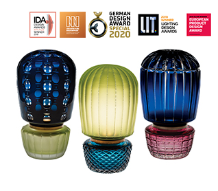 Candeeiro de Mesa Verde Esmeralda Abissal. Em vidro de cor e cristal lapidado, os modelos Abissal evocam a forma de seres que habitam as profundezas dos oceanos, e a sua luminosidade forte, estranha e poética.