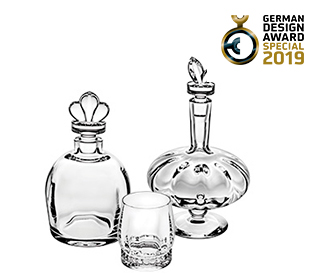 Estuche con 2 Vasos de Whisky Bajos Blue Ming. El complemento en línea de porcelana que el diseñador holandés ha creado para Vista Alegre recurre al ondulado, una antigua técnica de decoración que crea los distintivos pliegues en el interior del cristal.
