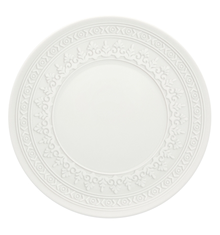 Bread & Butter Plate Ornament. Inspired by the ceilings of the Vista Alegre Palace, Ornament surprises with its sophistication and subtlety of the white relief on the white pieces,uniting classical architecture and contemporary design.