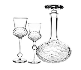 Wine Decanter Toccata. Turned goblets of classical inspiration, with hand-polished texture, each with a ball positioned in a different place of the stem, suggesting the arrangement of musical notes on a staff.